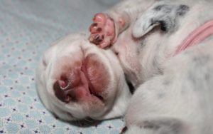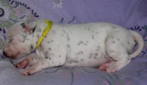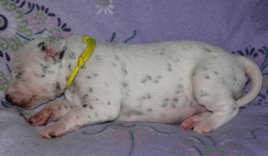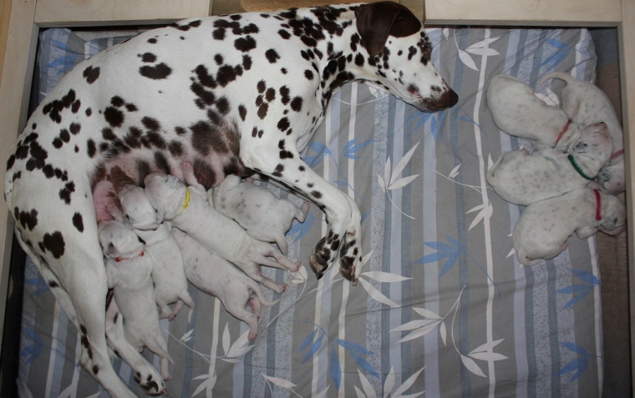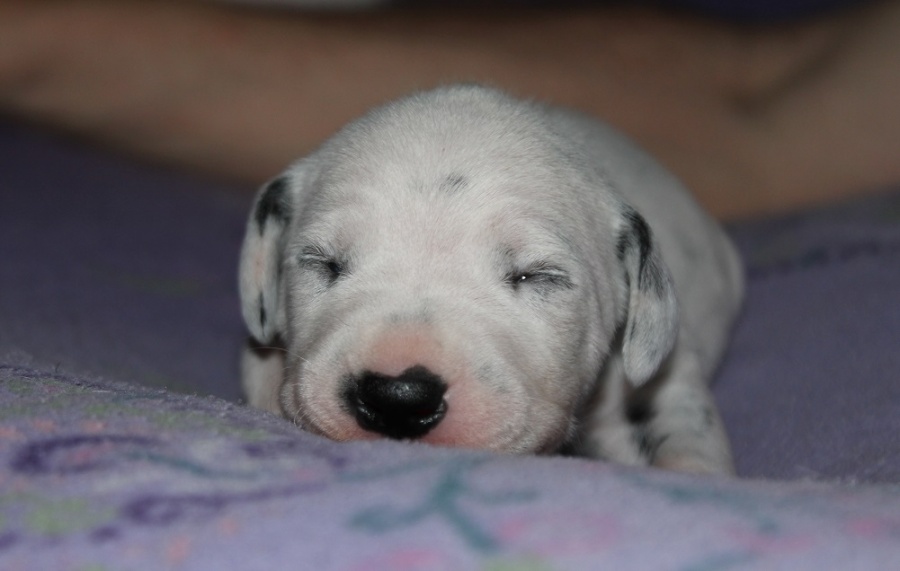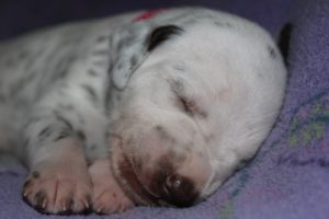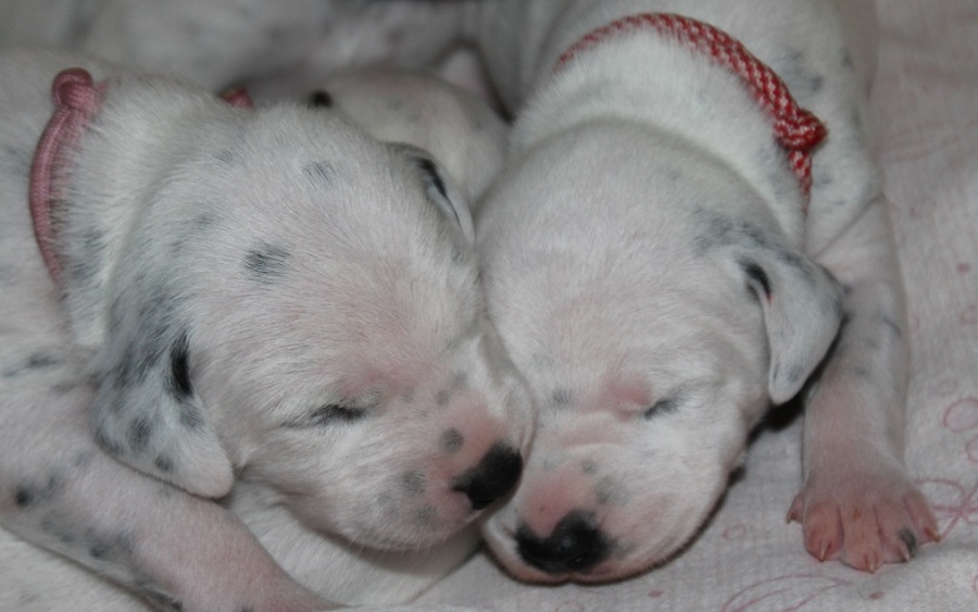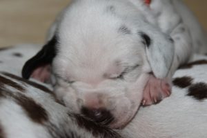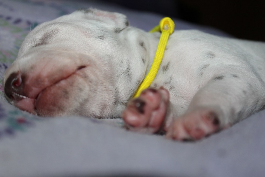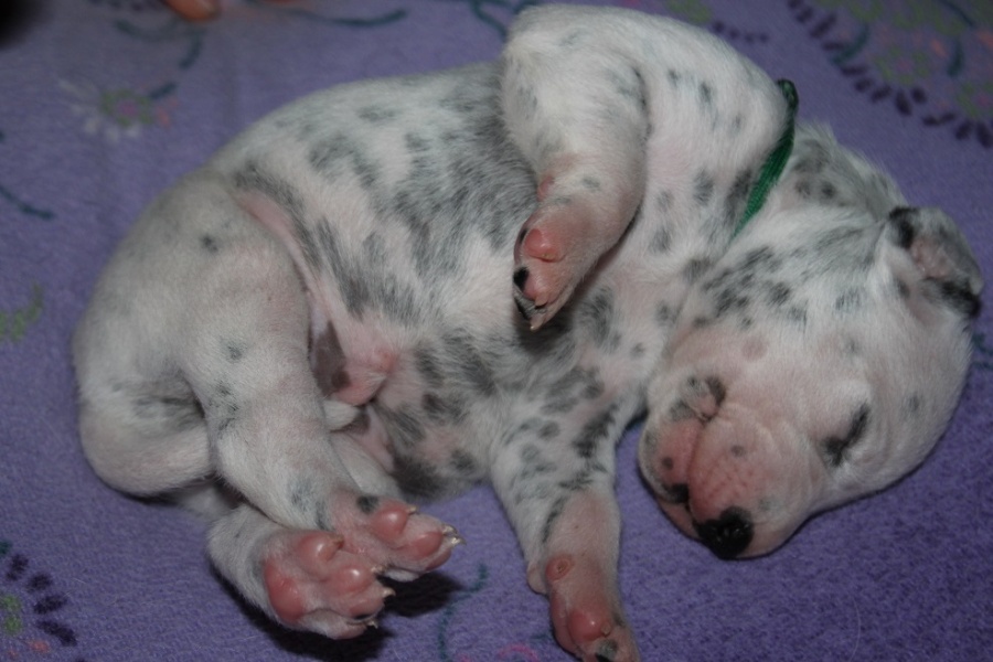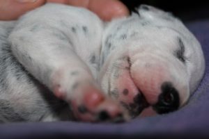 Deborah`s Welpen entwickeln sich prächtig. Am 6. Tag, ihres noch so jungen Lebens, hatten alle ihr Geburtsgewicht verdoppelt. Noch schlafen sie sehr viel, werden aber zusehens aktiver. Sie heben ihre Köpfchen oder versuchen sich auf den Hinterbeinen abzustützen. Herr Schwarz blinzelt mich schon etwas an und Fräulein Orange hat schon einige Male versucht über ihre Mutter zu klettern. Es ist so schön das alles zu beobachten; eine zauberhafte Rasselbande und eine wunderbare, geduldige Mama!