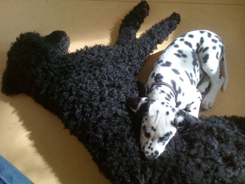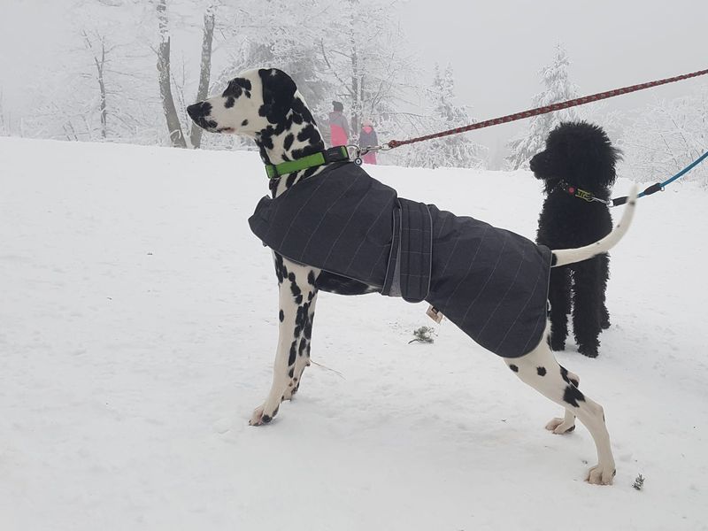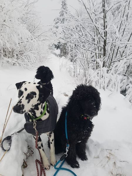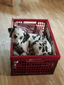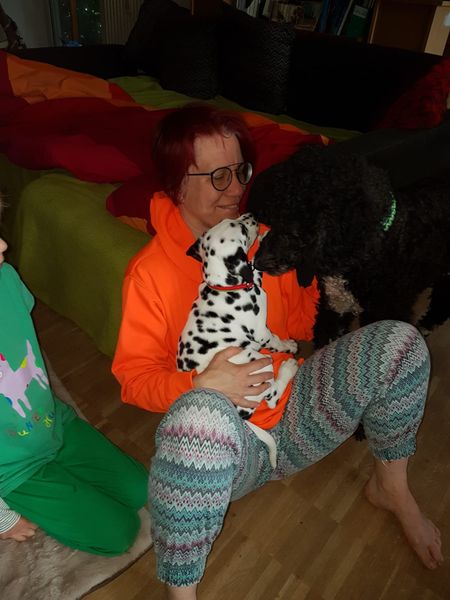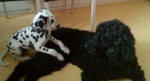 Ausserdem war der Sportschwerpunkt in den letzten Jahren vom Vierkampf in Richtung Canicross und Zughundesport gegangen, so dass ich nun einen Hund suchte, der einige Kilo mehr auf die Waage bringen würde als meine Pudel. Bewegungsfreude, Familientauglichkeit und etwas schwerer als ein Großpudel – das waren die Kriterien, mit denen wir auf den Dalmatiner und nach etwas Recherche auf die Dalmatiner von der Ibergquelle kamem.